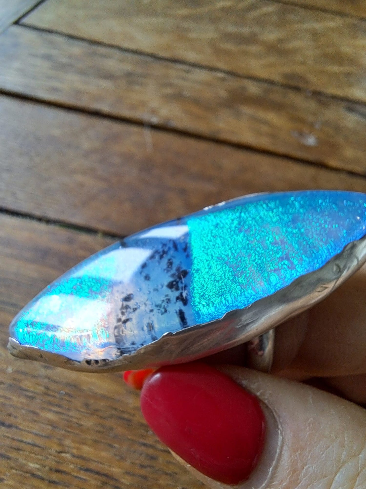 Dichroic Fused-Glass Silver Ring - Blue/Black