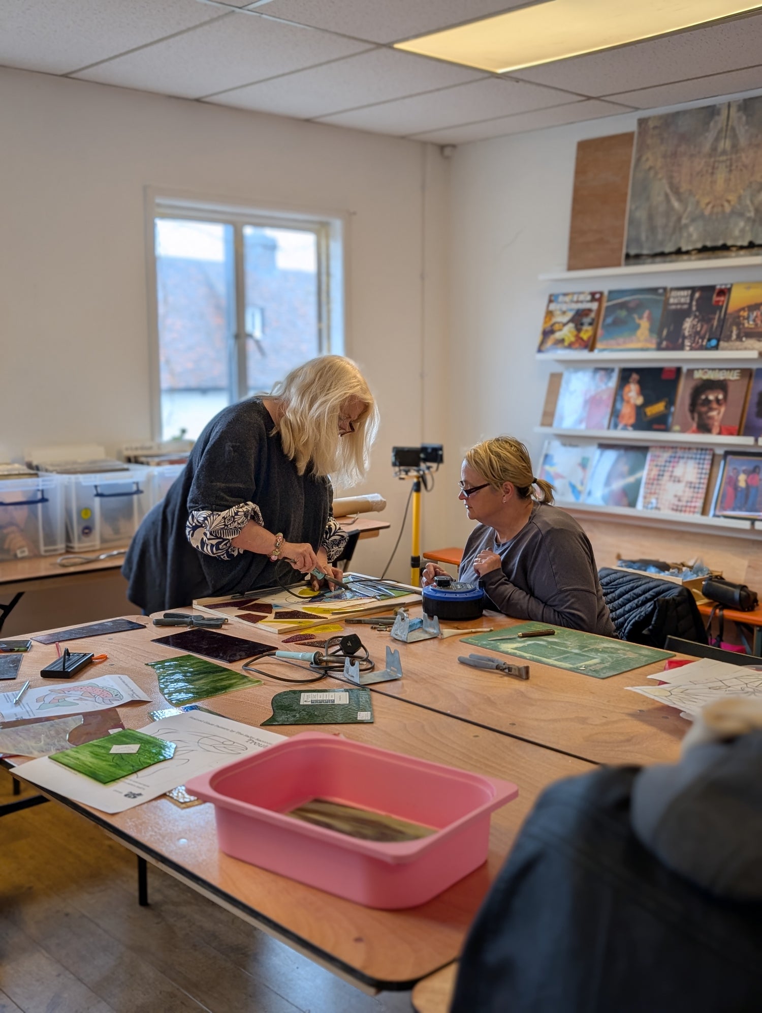 Classes are a place where you can work on your own project at your own pace. We will be starting out with the theme of 3D Boxes and Terrariums. You will get the opportunity to decorate the glass using traditional painting methods or add texture using fusing methods.